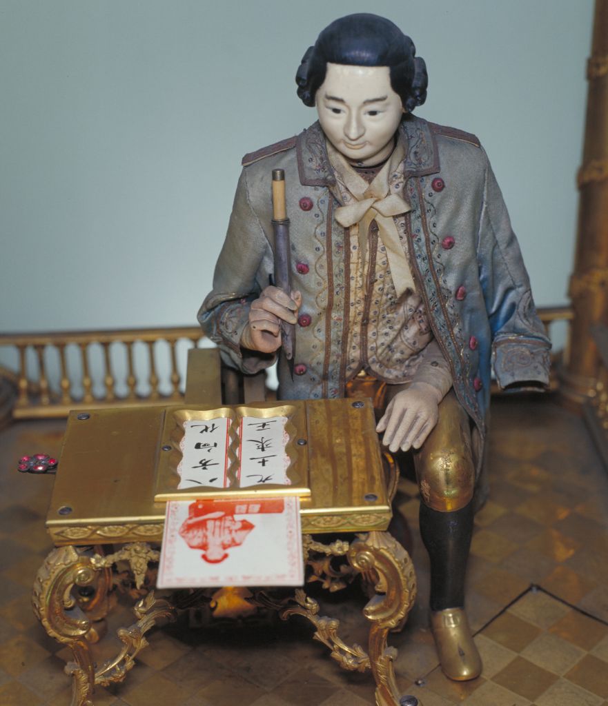 ตุ๊กตาชายเขียนหนังสือที่ประดับในนาฬิกา (ภาพจาก https://intl.dpm.org.cn/)